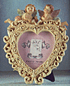 ![]() 33223 Joyful cherubs decorate this heart-shaped frame for a 3 1/2" sq. in. photograph. Part of the Cherubim Collection. Alabastrite. 5 3/4" x 3/4" x 7 3/4" high. $9.95 |