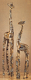 ![]() 30218 Long and lean giraffes in safari patchwork design. Alabastrite. May require additional freight charge. Large 6 3/8" x 3" x 31" high. $74.95 set. Exclusive. |